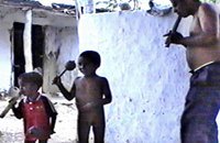 Momento de encuentro, Don Casiano al centro con rostro de Don Roque Garcés. Foto ER 2003